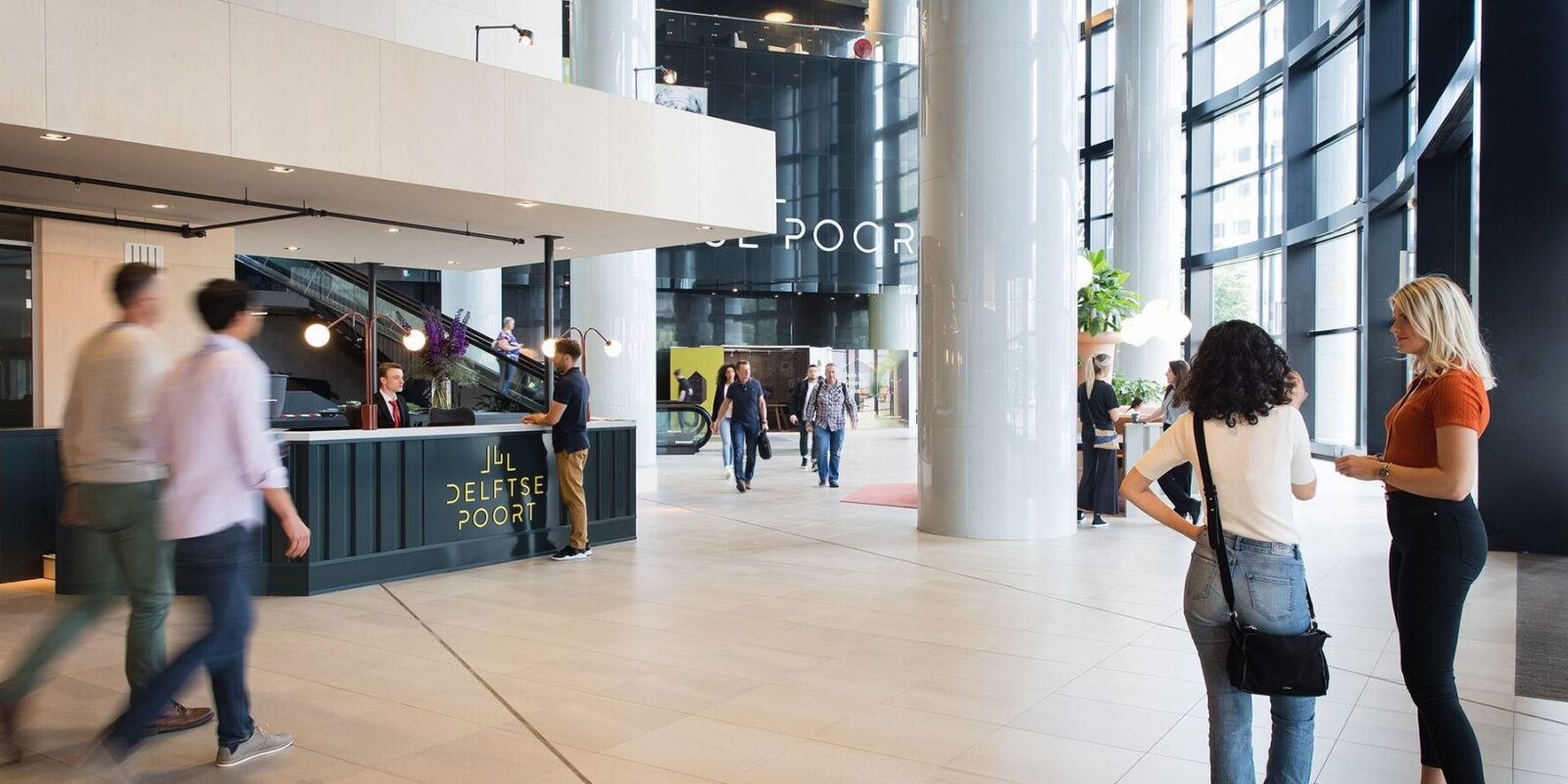 Delftse Poort is 24/7 toegankelijk. Tussen 6:30 en 20:00 uur via de hoofdingang, vóór 6:30 en ná 20:00 uur met je persoonlijke pas via de deur aan het Delftseplein (naast garage P2). Je loopt dan rechtdoor naar boven en via het trappenhuis naar de 3e verdieping. De uitgang vind je ook weer via de deur naast garage P2.